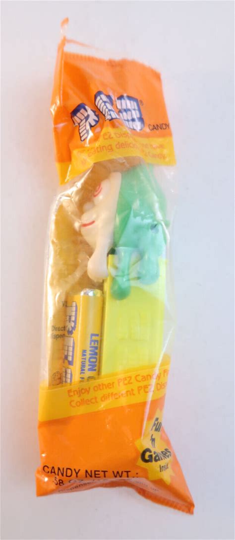 Pez Dispenser Green Alien Hair With Yellow Stand Lemon Candy (New)