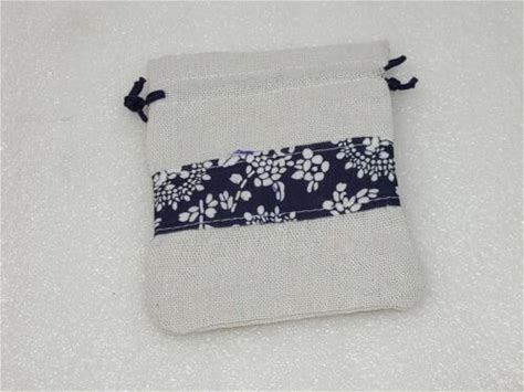 Small Drawstring Bag Pouch Light Grey / Navy Blue For Makeup Or