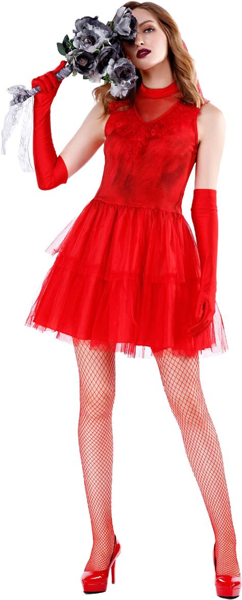 Red Zombie Ghost Bride Dress Mesh Skirt Cosplay Costume Makeup Party