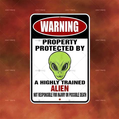 Property Protected Alien Metal Sign Home Room Wall Art Gift Funny